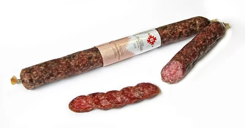 Колбаса сыровяленная «Старажытная» обладает мягким вкусом с идеально сбалансированным содержанием специй. Сырокопченая колбаса — продукт любимый многими. Обязательный гость праздничного стола, а некоторые не представляют завтрак без нее. Пряный аромат, умеренная жирность и разнообразие вкусовых оттенков завоевали любовь потребителей. Изготовленная с соблюдением технологии колбаса является деликатесом. Продукт замечательно вписывается в разные блюда, от бутербродов до нарезок.